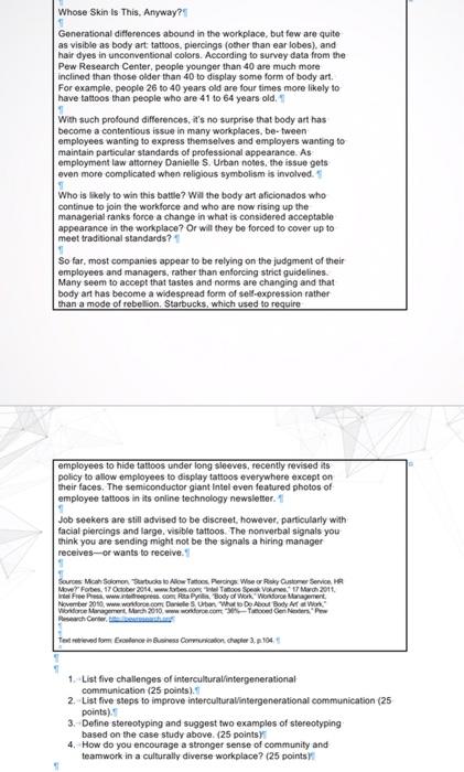 Solved Whose Skin Is This Anyway Generational Differences Chegg Com